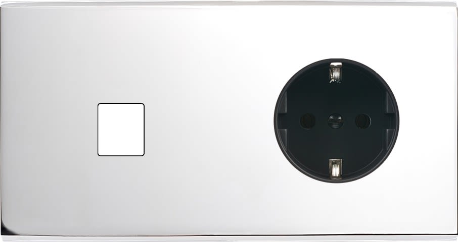Façade Confidence en laiton massif finition Chrome double horizontale 1 média prise schuko 2P+T