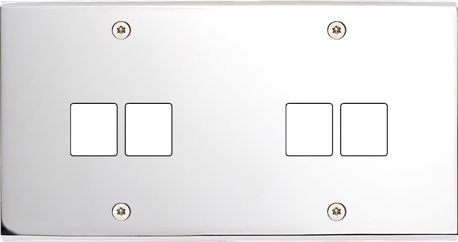 Façade Confidence en laiton massif finition Chrome double horizontale 2 média 2 média. Façade à vis. Dimensions 151x80x5mm. Fabriqué en France.