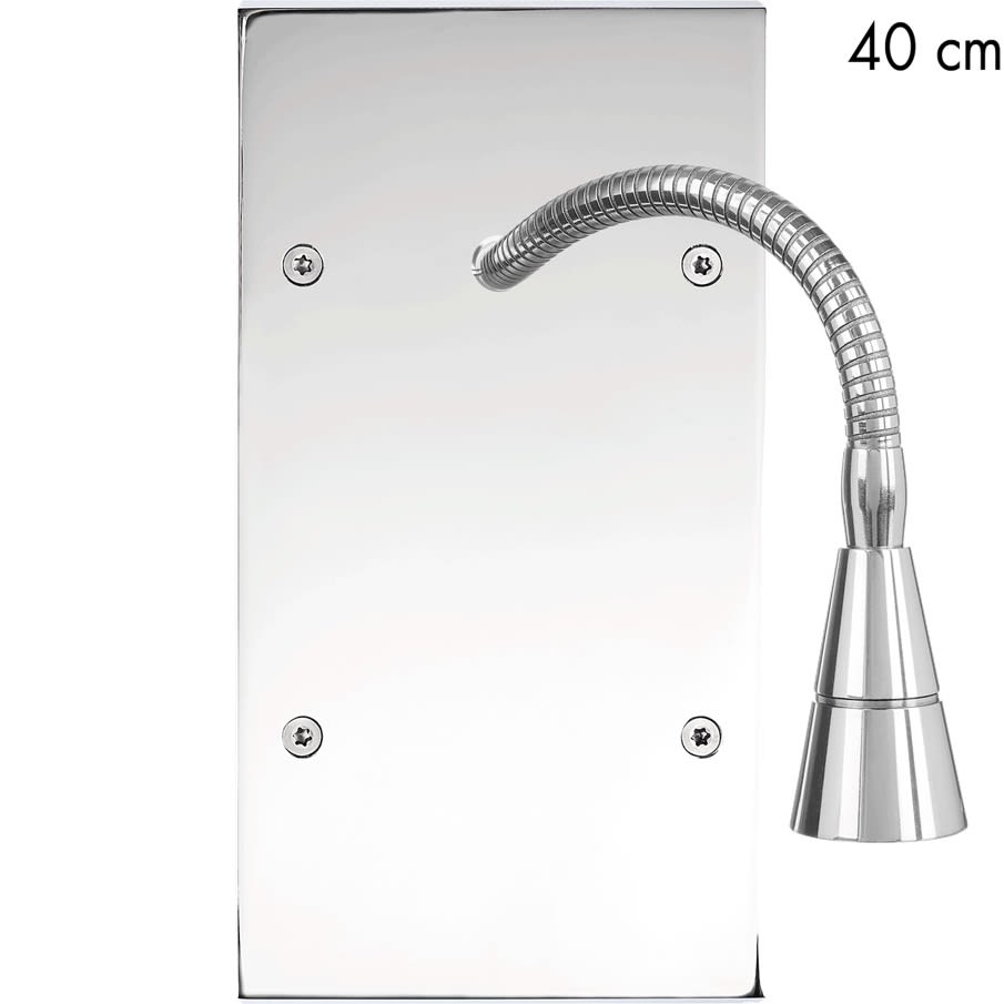 Façade Confidence en laiton massif finition Chrome double verticale liseuse flexible 40cm. Façade à vis. Dimensions 80x151x5mm. Fabriqué en France.