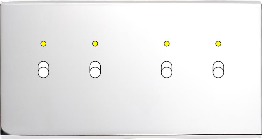 Façade Confidence en laiton massif finition Chrome Miroir double horizontale 2 basculeurs+LED 2 basculeurs+LED magnétique. Dimensions : 151x80x5mm, deux chanfreins biseautés. A associer à nos leviers en laiton massif. Fabriqué en France.