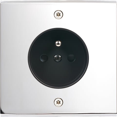 Façade Confidence en laiton massif finition Chrome simple prise de courant 2P+T. Façade à vis. Dimensions 80x80x5mm. Fabriqué en France.