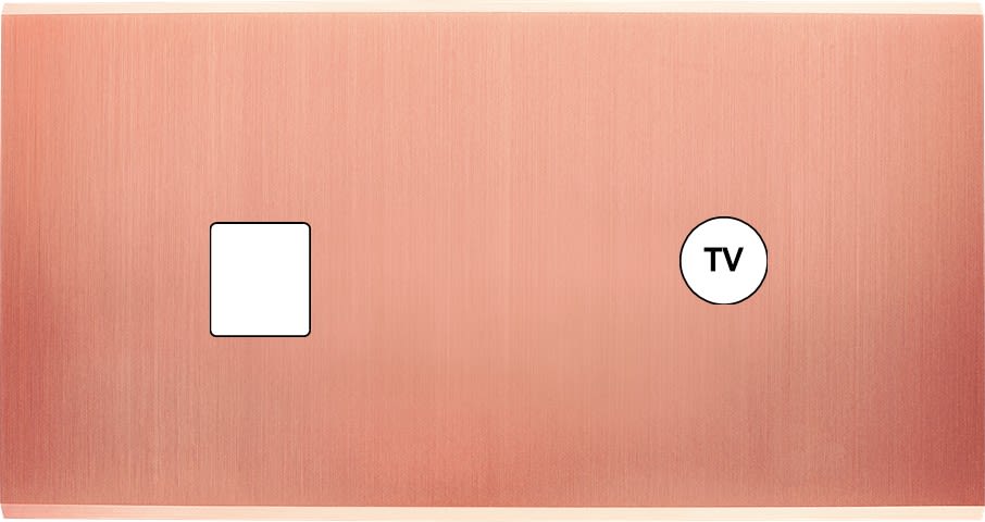 Laiton massif 5mm - 151x80mm, horizontal ou vertical - 12 finitions disponibles et plus de 50 fonctions - Montage sur boîtiers standards profondeur 50mm - Montage aimanté ou à vis