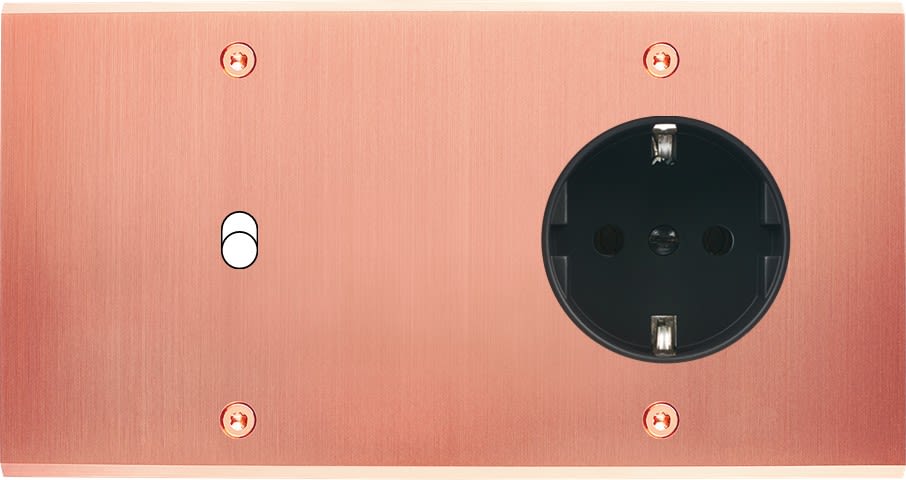 Laiton massif 5mm - 151x80mm, horizontal ou vertical - 12 finitions disponibles et plus de 50 fonctions - Montage sur boîtiers standards profondeur 50mm - Montage aimanté ou à vis