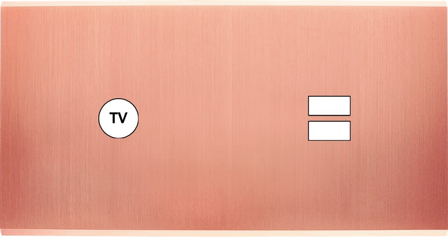 Laiton massif 5mm - 151x80mm, horizontal ou vertical - 12 finitions disponibles et plus de 50 fonctions - Montage sur boîtiers standards profondeur 50mm - Montage aimanté ou à vis
