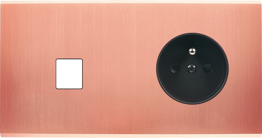 Laiton massif 5mm - 151x80mm, horizontal ou vertical - 12 finitions disponibles et plus de 50 fonctions - Montage sur boîtiers standards profondeur 50mm - Montage aimanté ou à vis