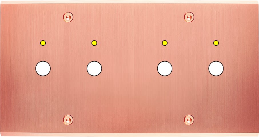 Laiton massif 5mm - 151x80mm, horizontal ou vertical - 12 finitions disponibles et plus de 50 fonctions - Montage sur boîtiers standards profondeur 50mm - Montage aimanté ou à vis
