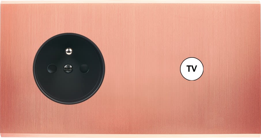 Laiton massif 5mm - 151x80mm, horizontal ou vertical - 12 finitions disponibles et plus de 50 fonctions - Montage sur boîtiers standards profondeur 50mm - Montage aimanté ou à vis
