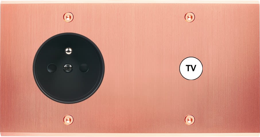 Laiton massif 5mm - 151x80mm, horizontal ou vertical - 12 finitions disponibles et plus de 50 fonctions - Montage sur boîtiers standards profondeur 50mm - Façade à vis