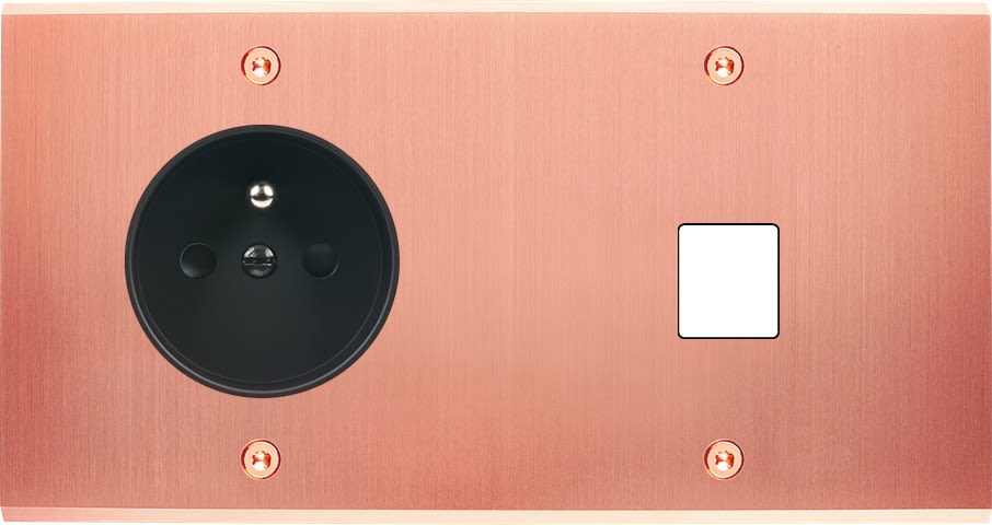 Laiton massif 5mm - 151x80mm, horizontal ou vertical - 12 finitions disponibles et plus de 50 fonctions - Montage sur boîtiers standards profondeur 50mm - Façade à vis
