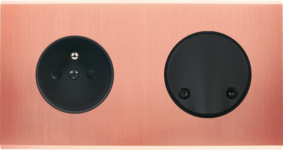 Laiton massif 5mm - 151x80mm, horizontal ou vertical - 12 finitions disponibles et plus de 50 fonctions - Montage sur boîtiers standards profondeur 50mm - Montage aimanté ou à vis