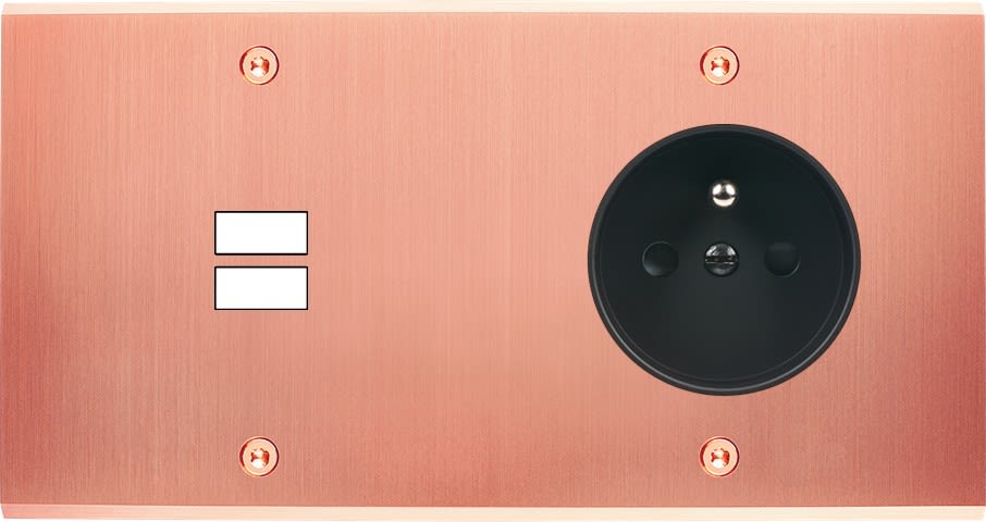 Laiton massif 5mm - 80x151mm, horizontal ou vertical - 12 finitions disponibles et plus de 50 fonctions - Montage sur boîtiers standards profondeur 50mm - Façade à vis