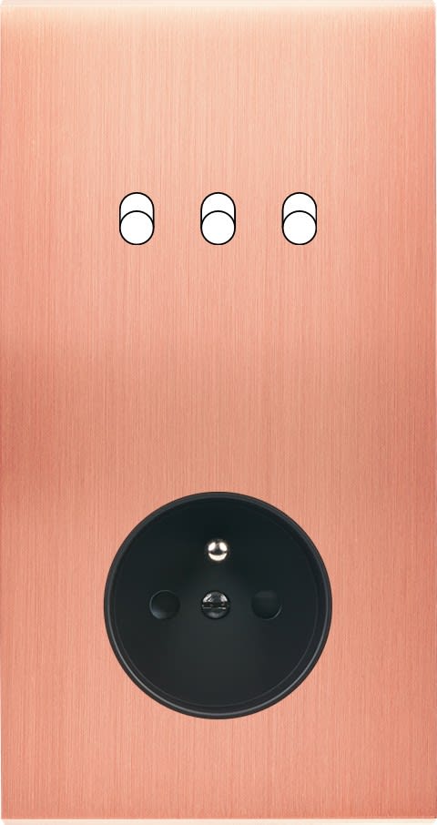 Laiton massif 5mm - 151x80mm, horizontal ou vertical - 12 finitions disponibles et plus de 50 fonctions - Montage sur boîtiers standards profondeur 50mm - Montage aimanté ou à vis
