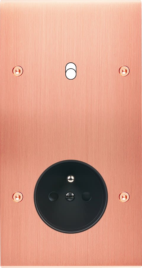 Laiton massif 5mm - 80x151mm, horizontal ou vertical - 12 finitions disponibles et plus de 50 fonctions - Montage sur boîtiers standards profondeur 50mm - Façade à vis