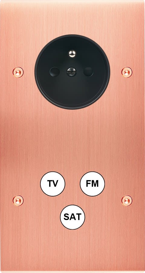 Laiton massif 5mm - 80x151mm, horizontal ou vertical - 12 finitions disponibles et plus de 50 fonctions - Montage sur boîtiers standards profondeur 50mm - Façade à vis