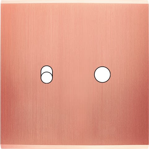 Façade Confidence en laiton massif finition Cuivre Satiné simple 1 basculeur 1 PUSH magnétique. Dimensions : 80x80x5mm, deux chanfreins biseautés. Fabriqué en France.