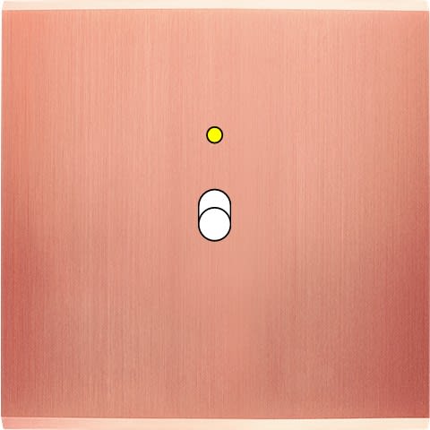 Façade Confidence en laiton massif finition Cuivre Satiné simple 1 basculeur+LED magnétique. Dimensions : 80x80x5mm, deux chanfreins biseautés. Fabriqué en France.