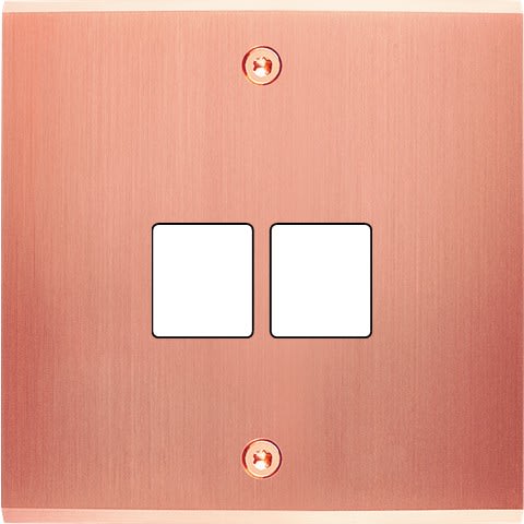 Façade Confidence en laiton massif finition Cuivre Satiné simple 2 MEDIA. Façade à vis. Dimensions 80x80x5mm. Fabriqué en France.