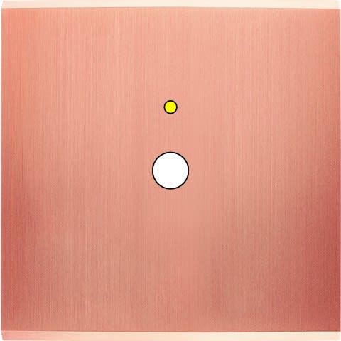 Façade Confidence en laiton massif finition Cuivre Satiné simple 1 bouton PUSH+LED. Façade magnétique. Dimensions 80x80x5mm. Fabriqué en France.