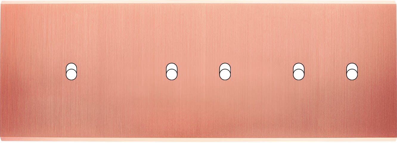 Laiton massif 5mm - 222x80mm, horizontal ou vertical - 12 finitions disponibles et plus de 50 fonctions - Montage sur boîtiers standards profondeur 50mm - Montage aimanté ou à vis