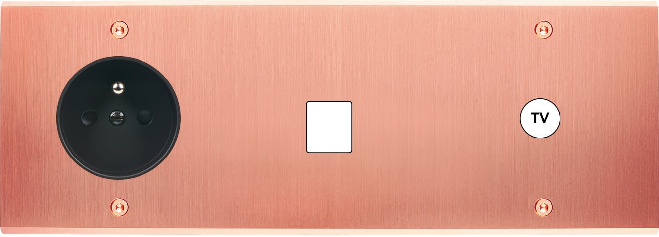 Laiton massif 5mm - Format triple horizontal 222x80mm - 12 finitions disponibles et plus de 50 fonctions - Montage sur boîtiers standards profondeur 50mm - Façade à vis