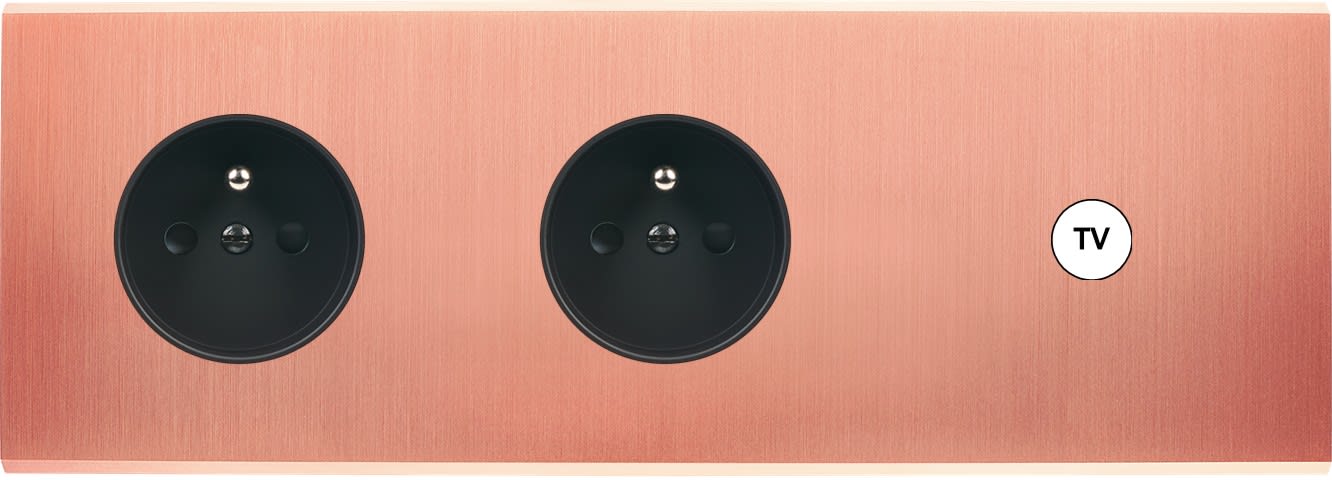 Laiton massif 5mm - 222x80mm, horizontal ou vertical - 12 finitions disponibles et plus de 50 fonctions - Montage sur boîtiers standards profondeur 50mm - Montage aimanté ou à vis