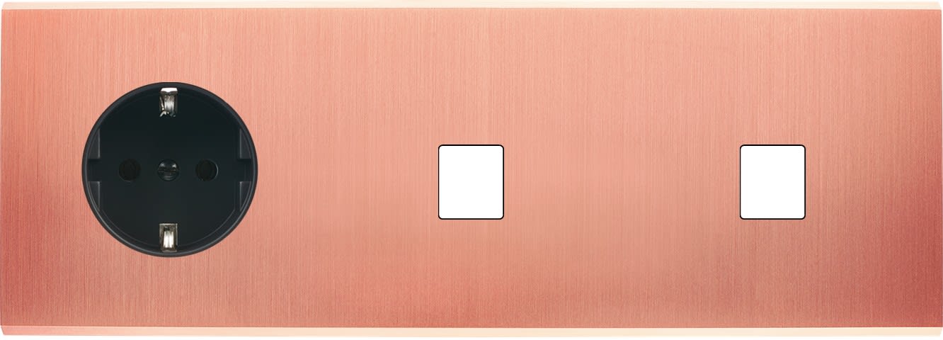 Laiton massif 5mm - 222x80mm, horizontal ou vertical - 12 finitions disponibles et plus de 50 fonctions - Montage sur boîtiers standards profondeur 50mm - Montage aimanté ou à vis