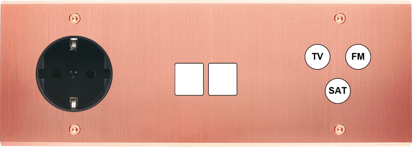 Laiton massif 5mm - Façade format triple horizontal 222x80mm - 12 finitions disponibles et plus de 50 fonctions - Montage sur boîtiers standards profondeur 50mm - Façade à vis - Compatible avec les mécanismes MODELEC renforcés ou standards à connexion automatique