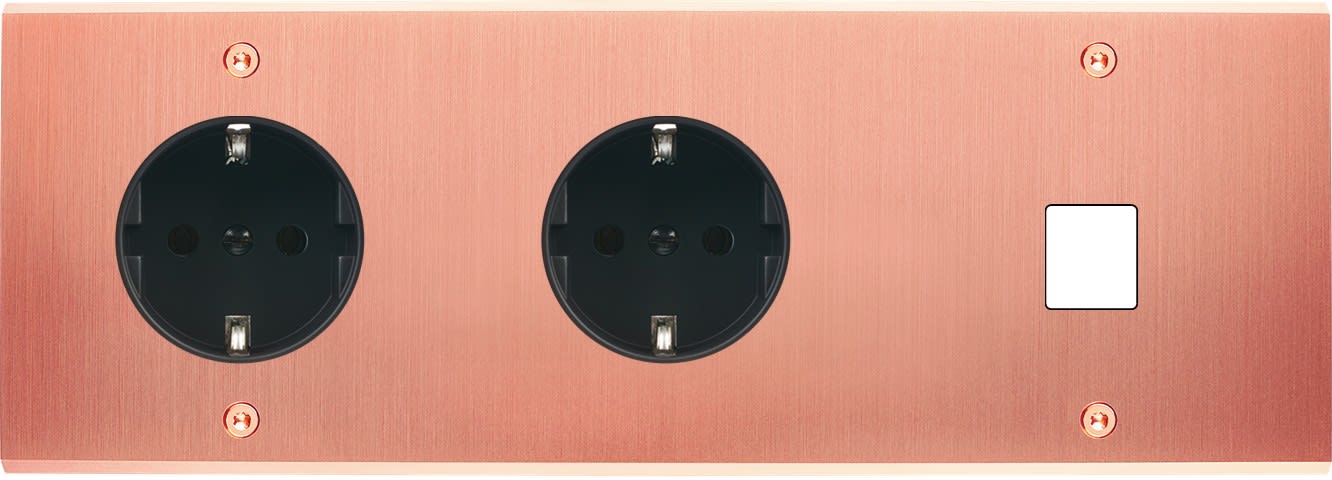 Laiton massif 5mm - Façade format triple horizontal 222x80mm - 12 finitions disponibles et plus de 50 fonctions - Montage sur boîtiers standards profondeur 50mm - Façade à vis - Compatible avec les mécanismes MODELEC renforcés ou standards à connexion automatique