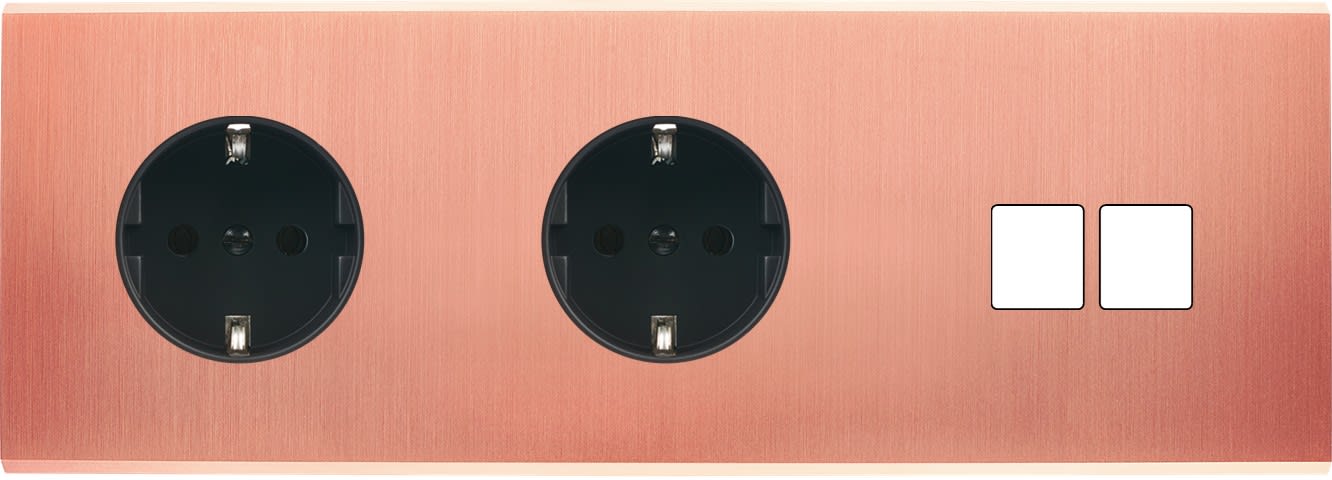 Laiton massif 5mm - 222x80mm, horizontal ou vertical - 12 finitions disponibles et plus de 50 fonctions - Montage sur boîtiers standards profondeur 50mm - Montage aimanté ou à vis