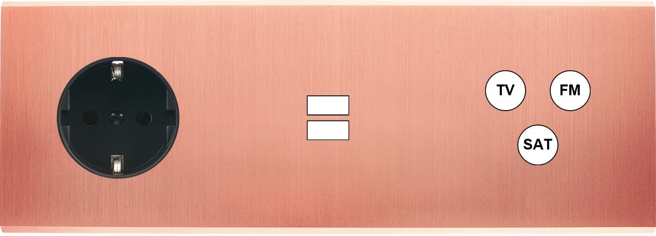 Laiton massif 5mm - 222x80mm, horizontal ou vertical - 12 finitions disponibles et plus de 50 fonctions - Montage sur boîtiers standards profondeur 50mm - Montage aimanté ou à vis