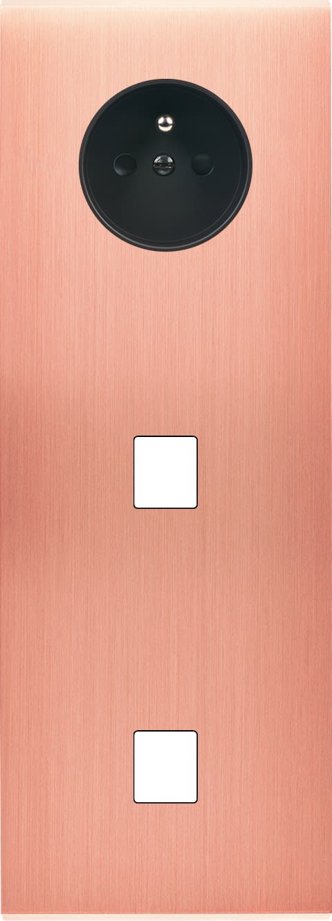 Laiton massif 5mm - 222x80mm, horizontal ou vertical - 12 finitions disponibles et plus de 50 fonctions - Montage sur boîtiers standards profondeur 50mm - Montage aimanté ou à vis