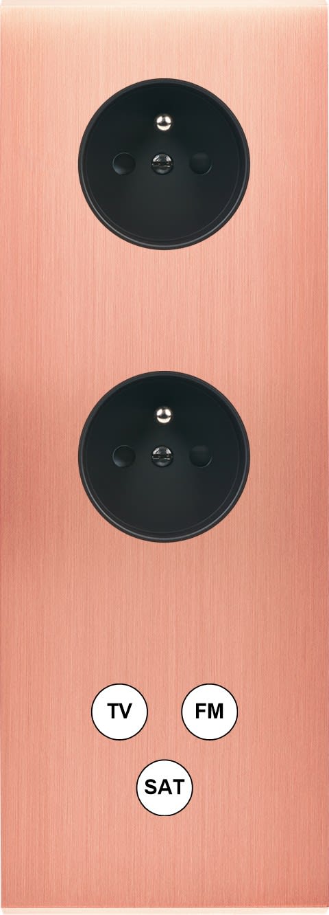 Façade Confidence en laiton massif finition Cuivre Satiné triple verticale prise 2P+T prise 2P+T TV-FM-SAT