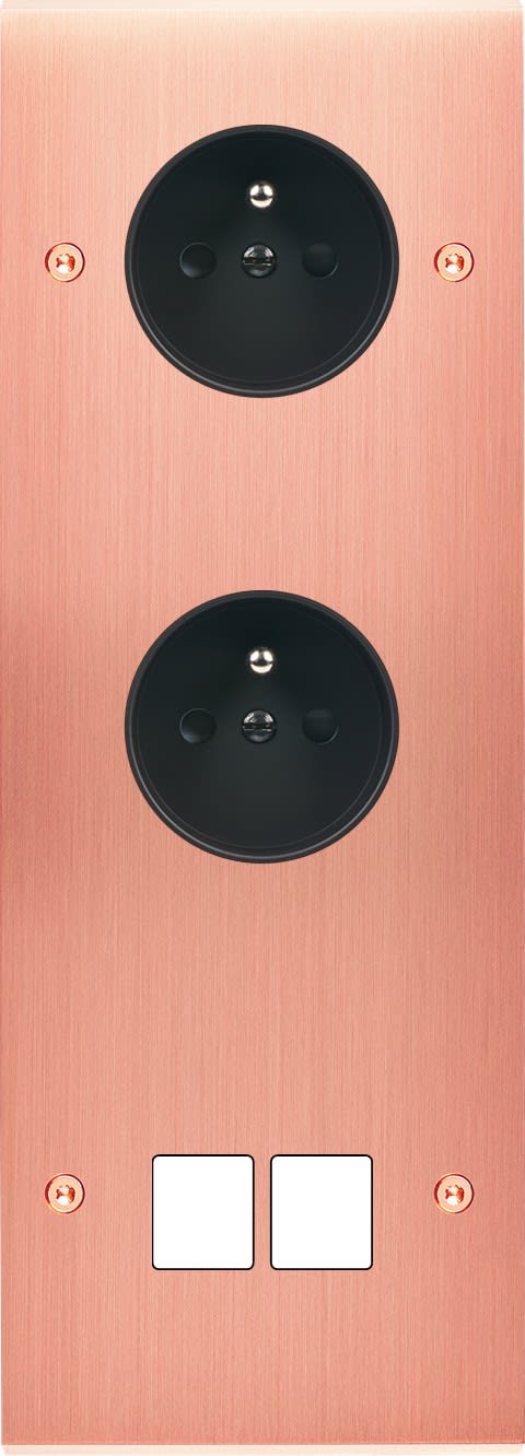 Laiton massif 5mm - 222x80mm, horizontal ou vertical - 12 finitions disponibles et plus de 50 fonctions - Montage sur boîtiers standards profondeur 50mm - Façade à vis