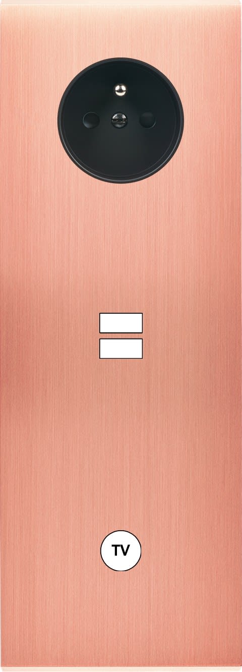 Laiton massif 5mm - 222x80mm, horizontal ou vertical - 12 finitions disponibles et plus de 50 fonctions - Montage sur boîtiers standards profondeur 50mm - Montage aimanté ou à vis
