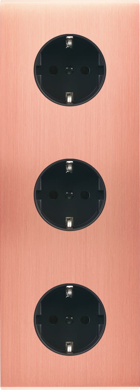 Façade Confidence en laiton massif finition Cuivre Satiné triple verticale 1 prise Schuko 1 prise Schuko 1 prise Schuko