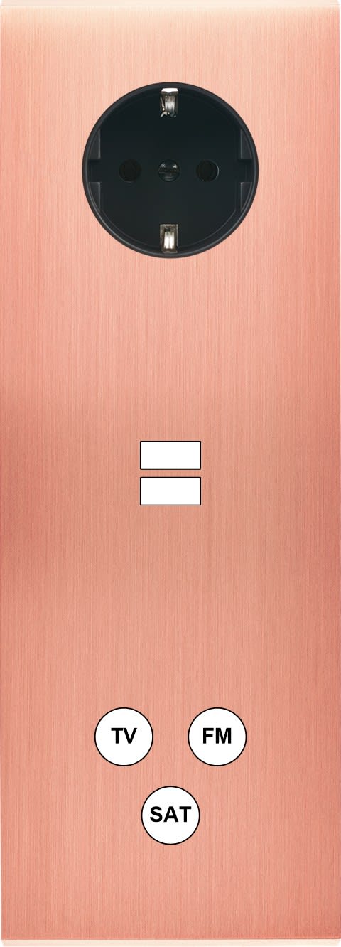 Laiton massif 5mm - 222x80mm, horizontal ou vertical - 12 finitions disponibles et plus de 50 fonctions - Montage sur boîtiers standards profondeur 50mm - Montage aimanté ou à vis