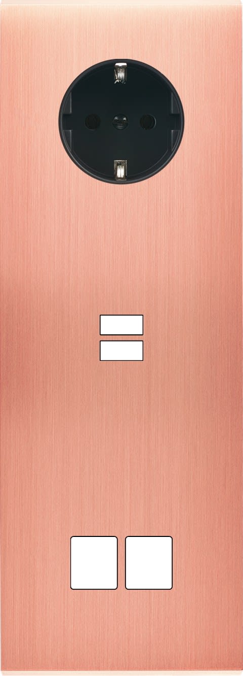 Laiton massif 5mm - 222x80mm, horizontal ou vertical - 12 finitions disponibles et plus de 50 fonctions - Montage sur boîtiers standards profondeur 50mm - Montage aimanté ou à vis