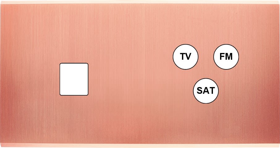 Laiton massif 5mm - 151x80mm, horizontal ou vertical - 12 finitions disponibles et plus de 50 fonctions - Montage sur boîtiers standards profondeur 50mm - Montage aimanté ou à vis