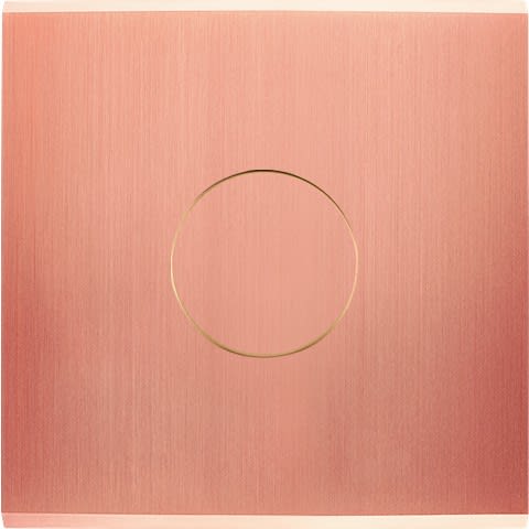 Façade Confidence en laiton massif finition Cuivre Satiné simple 1 variateur. Façade magnétique. Deux chanfreins biseautés. Dimensions 80x80x5mm. Fabriqué en France.