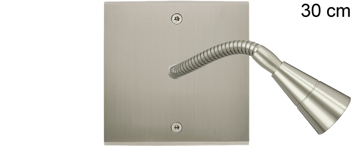 Façade Confidence en laiton massif finition Nickel Satiné simple liseuse flexible 30cm. Façade à vis. Dimensions 80x80x5mm. Fabriqué en France.