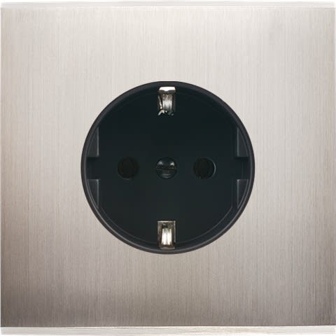 Façade Confidence en laiton massif finition Nickel Satiné simple 1 prise Schuko magnétique