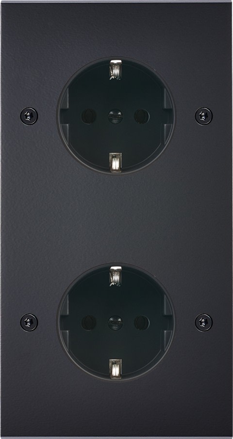 Façade Confidence en laiton massif finition Noir Mat double verticale 1 prise Schuko 1 prise Schuko à vis