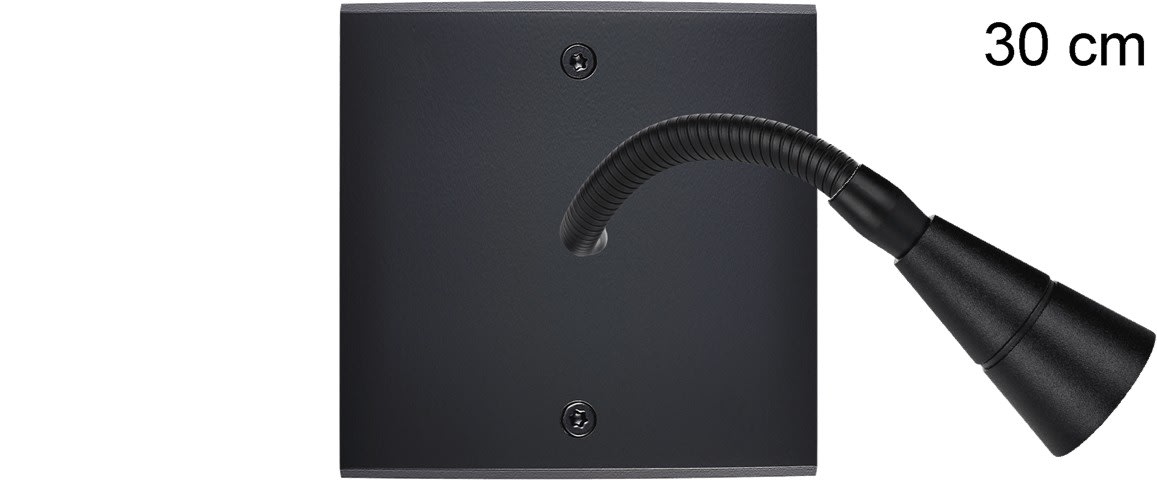 Façade Confidence en laiton massif finition Noir Mat simple liseuse flexible 30cm. Façade à vis. Dimensions 80x80x5mm. Fabriqué en France.