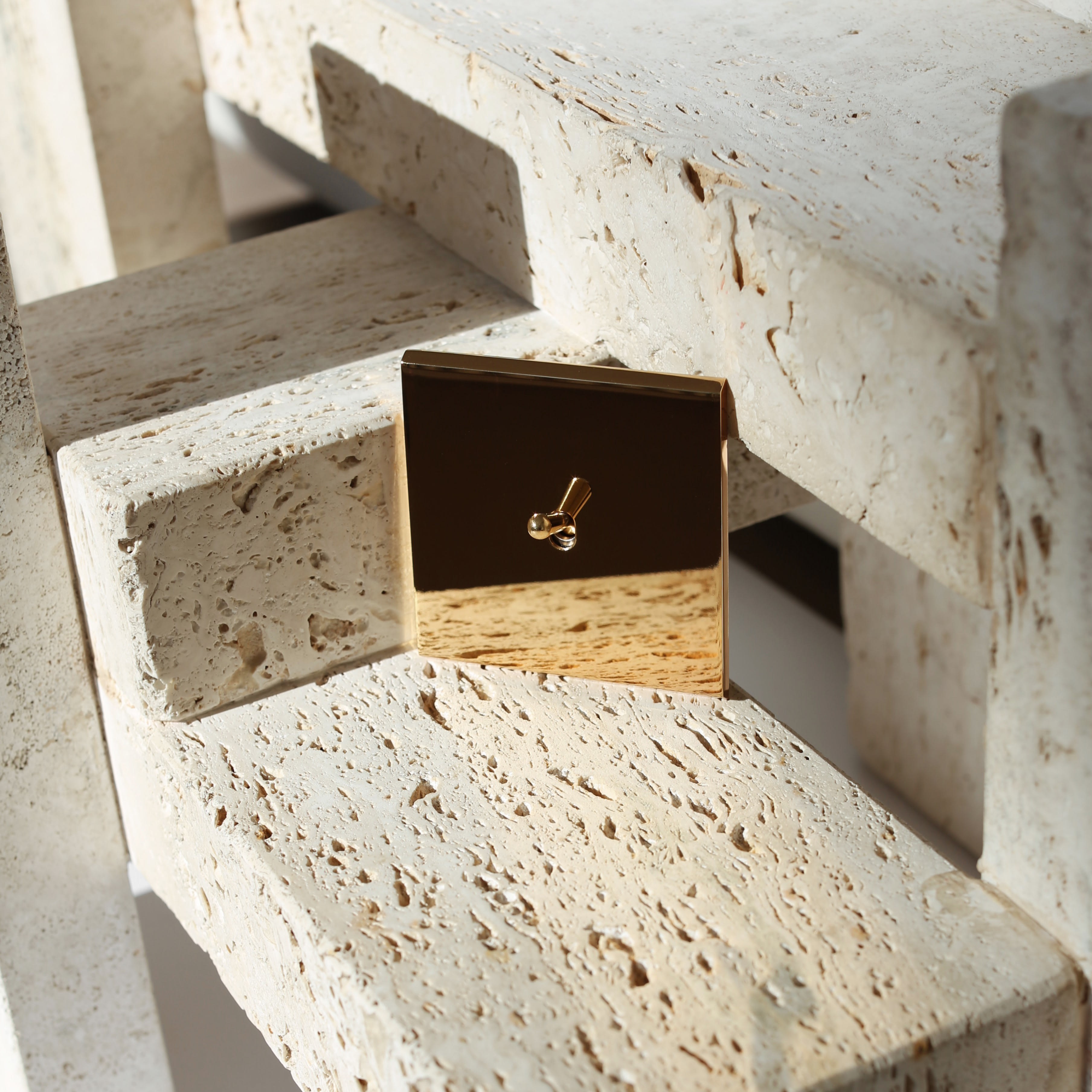 Laiton massif 5mm - 40x125mm - 12 finitions disponibles - Montage sur boîtiers d'encastrement standards ⌀32mm profondeur 50mm - Façade à vis - Compatible avec les mécanismes renforcés MODELEC