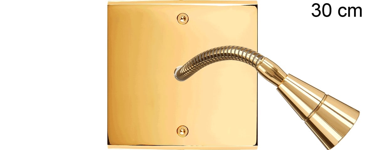 Façade Confidence en laiton massif finition Or Miroir simple liseuse flexible 30cm. Façade à vis. Dimensions 80x80x5mm. Fabriqué en France.