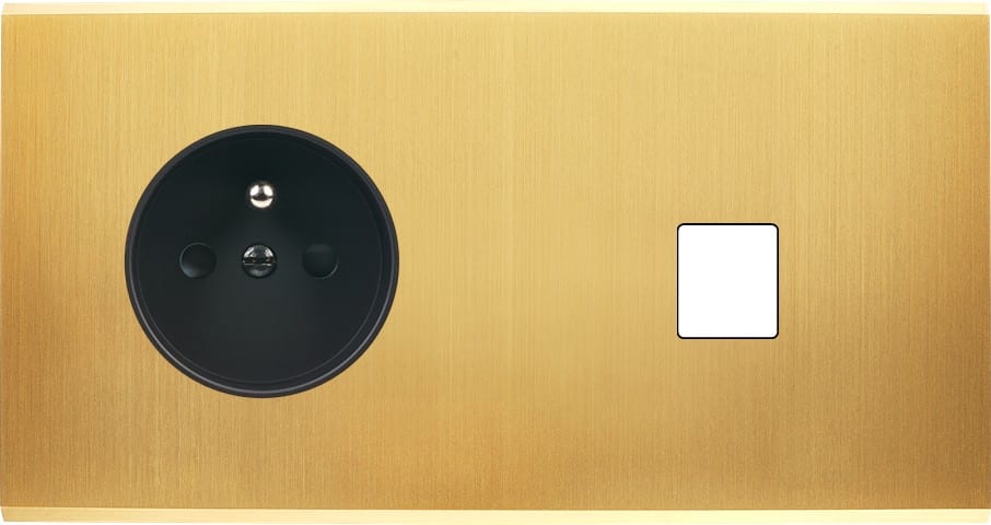 Laiton massif 5mm - 151x80mm, horizontal ou vertical - 12 finitions disponibles et plus de 50 fonctions - Montage sur boîtiers standards profondeur 50mm - Montage aimanté ou à vis
