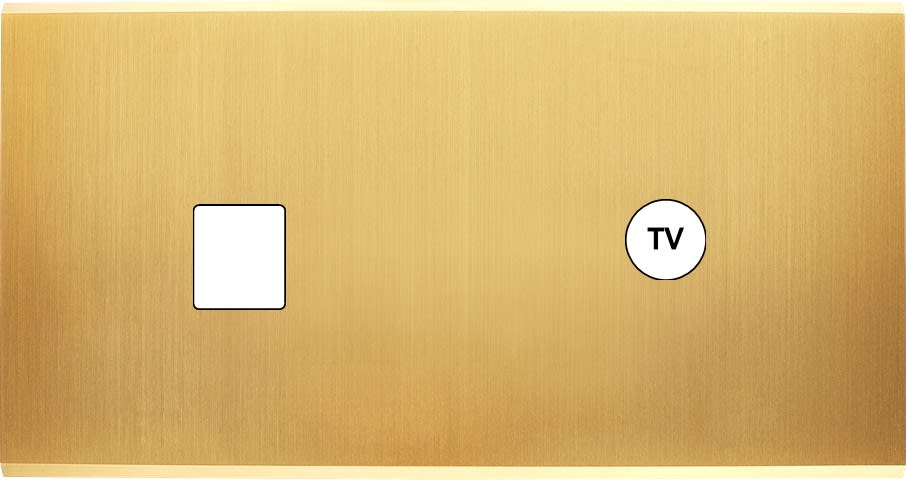 Laiton massif 5mm - 151x80mm, horizontal ou vertical - 12 finitions disponibles et plus de 50 fonctions - Montage sur boîtiers standards profondeur 50mm - Montage aimanté ou à vis