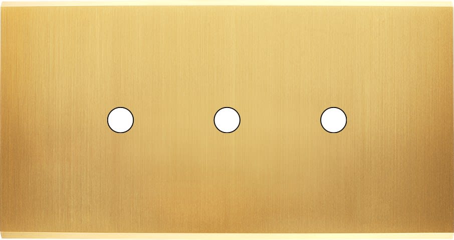 Laiton massif 5mm - 151x80mm, horizontal ou vertical - 12 finitions disponibles et plus de 50 fonctions - Montage sur boîtiers standards profondeur 50mm - Montage aimanté ou à vis