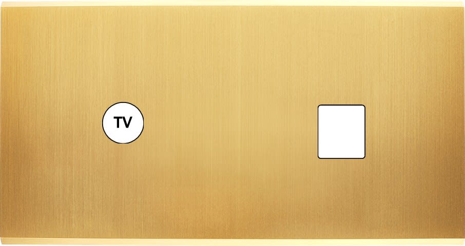 Laiton massif 5mm - 151x80mm, horizontal ou vertical - 12 finitions disponibles et plus de 50 fonctions - Montage sur boîtiers standards profondeur 50mm - Montage aimanté ou à vis