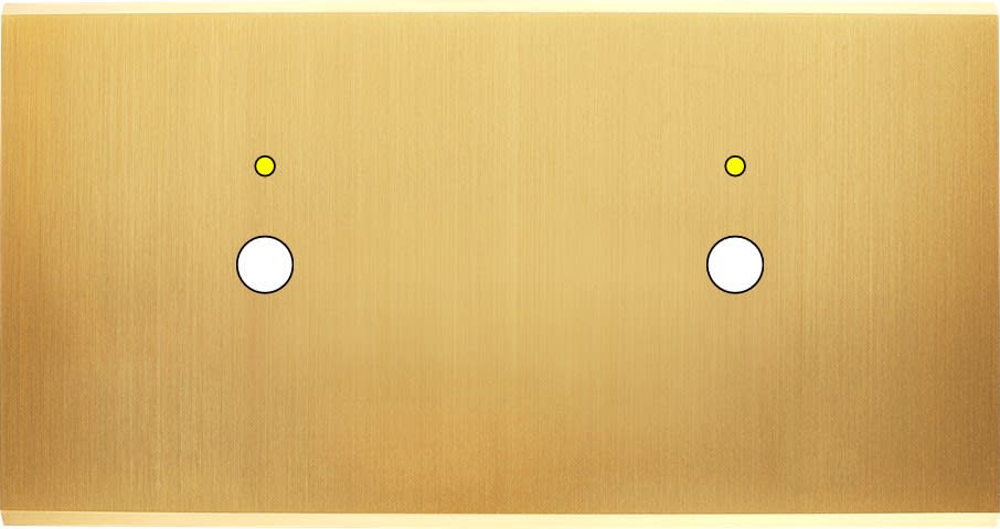 Laiton massif 5mm - 151x80mm, horizontal ou vertical - 12 finitions disponibles et plus de 50 fonctions - Montage sur boîtiers standards profondeur 50mm - Montage aimanté ou à vis